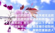 当您发现自己的游戏账号丢失或无法找回时,可能会感到非常沮丧和困惑。但是,不要担心,您可以通过以下步骤找回您的游戏账号。本文将详细介绍如何找回丢失的游戏账号,帮助您重新进入您喜爱的游戏世界。