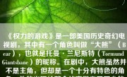 《权力的游戏》是一部美国历史奇幻电视剧,其中有一个角色叫做“大熊”(Bear),也就是托曼·兰尼斯特(Tormund Giantsbane)的昵称。在剧中,大熊虽然并不是主角,但却是一个十分有特色的角色,他的出现给整个故事带来了不少的色彩和看点。