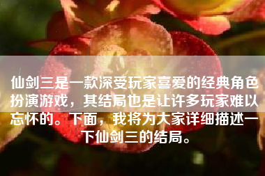 总之,仙剑三的结局给玩家们留下了深刻的印象和感动。它不仅仅是一款游戏,更是一部讲述人性、情感和生命的作品。它让我们思考生命的意义和价值,也让我们更加珍惜我们所拥有的一切。