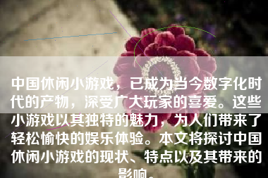 中国休闲小游戏,已成为当今数字化时代的产物,深受广大玩家的喜爱。这些小游戏以其独特的魅力,为人们带来了轻松愉快的娱乐体验。本文将探讨中国休闲小游戏的现状、特点以及其带来的影响。