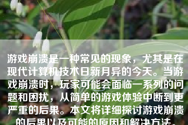 游戏崩溃是一种常见的现象,尤其是在现代计算机技术日新月异的今天。当游戏崩溃时,玩家可能会面临一系列的问题和困扰,从简单的游戏体验中断到更严重的后果。本文将详细探讨游戏崩溃的后果以及可能的原因和解决方法。