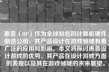 惠普(HP)作为全球知名的计算机硬件制造公司,其产品设计在游戏领域有着广泛的应用和影响。本文将探讨惠普设计游戏的优势、其产品在设计游戏方面的表现以及其在游戏领域的未来展望。