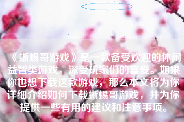 《蜥蜴哥游戏》是一款备受欢迎的休闲益智类游戏,深受玩家们的喜爱。如果你也想下载这款游戏,那么本文将为你详细介绍如何下载蜥蜴哥游戏,并为你提供一些有用的建议和注意事项。