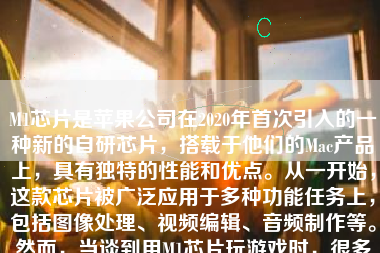 M1芯片是苹果公司在2020年首次引入的一种新的自研芯片,搭载于他们的Mac产品上,具有独特的性能和优点。从一开始,这款芯片被广泛应用于多种功能任务上,包括图像处理、视频编辑、音频制作等。然而,当谈到用M1芯片玩游戏时,很多人可能会好奇其表现如何。本文将深入探讨M1芯片在玩游戏方面的表现。
