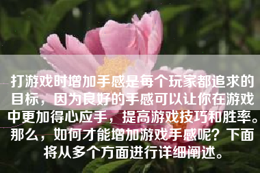 打游戏时增加手感是每个玩家都追求的目标,因为良好的手感可以让你在游戏中更加得心应手,提高游戏技巧和胜率。那么,如何才能增加游戏手感呢?下面将从多个方面进行详细阐述。